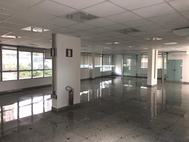 São aprox. 280m² em vão livre com 03 banheiros, copa, ar condicionado, cabeamento lógico e iluminação j instalados.